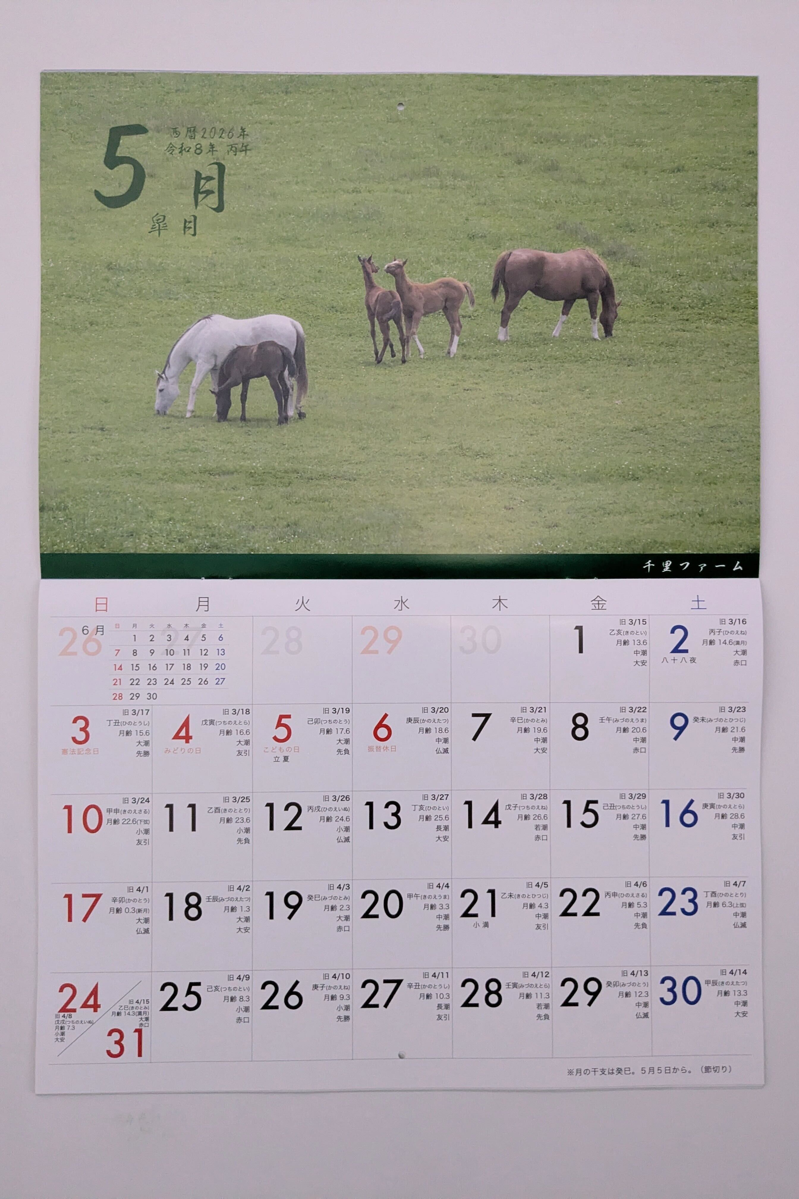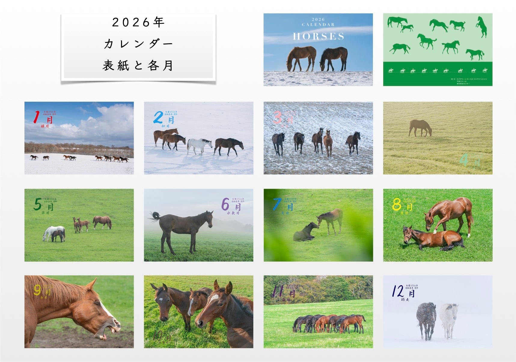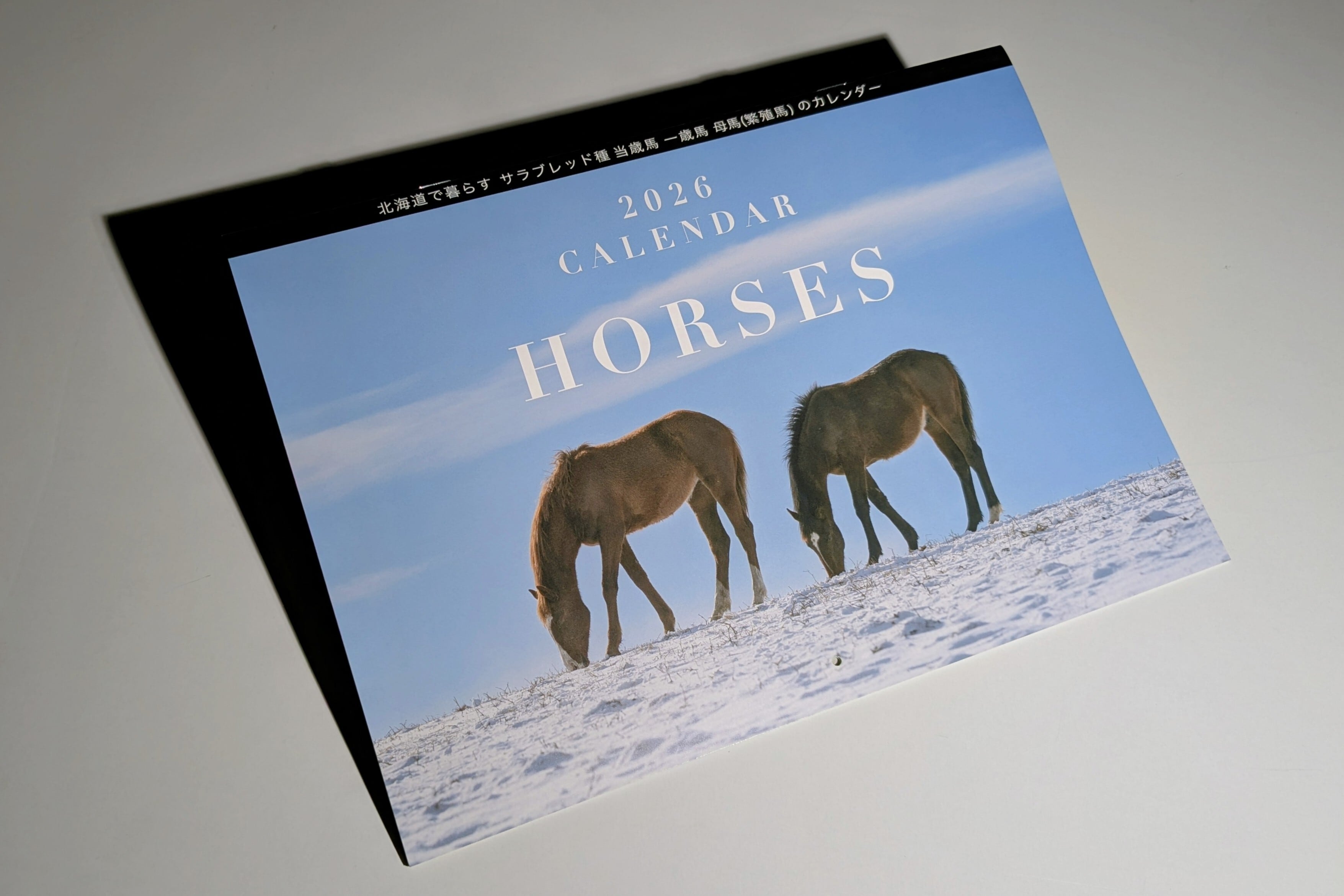 コメント:今年も馬カレンダーを制作しました。載っているのは、北海道新ひだか町・浦河町の牧場で暮らすサラブレッド種当歳馬、一歳馬、母馬(繁殖牝馬)になります。将来の競走馬、また、かつて競走馬であった馬達のほのぼのとした暮らしぶりをご覧ください。